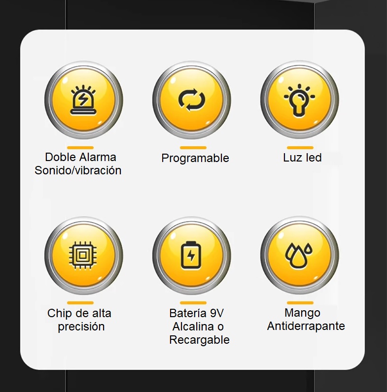 ► Programable: iluminación LED incorporada para trabajo en ambiente obscuro, modo silencioso (vibración pura) para lugares donde se requiere discreción.