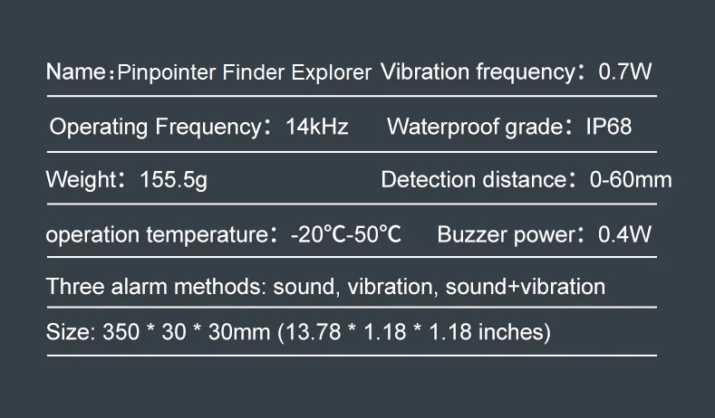 Detección precisa: bobina de inducción fuerte mejorada de 14 kHz, chip de alta precisión que admite detección de metales de 0-60 mm, sensibilidad ajustable en dos grados de alto y bajo.